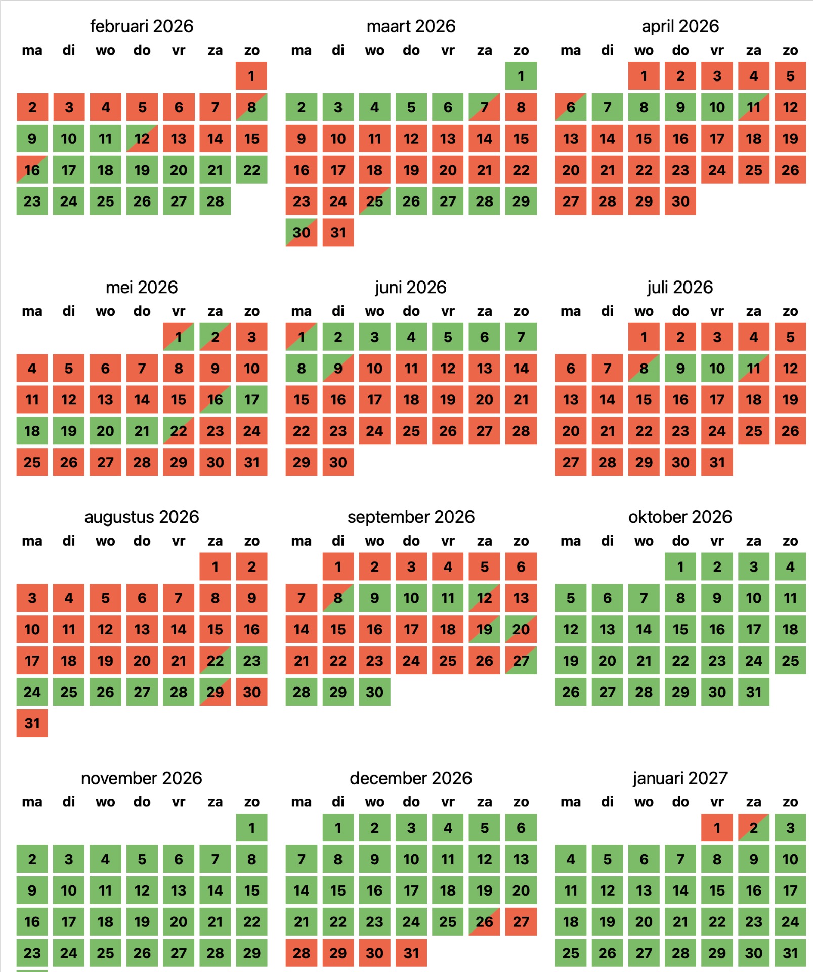 De kalender wordt met regelmaat bijgewerkt. Het kan echter voorkomen dat recente boekingen nog niet zichtbaar zijn.